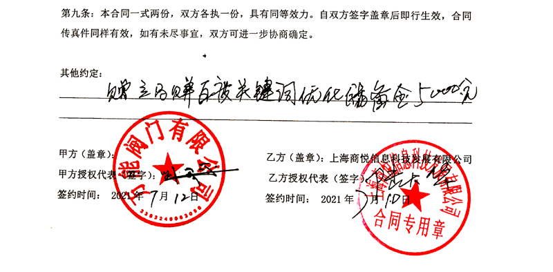 7月12日,商悅傳媒與中國·萬能閥門有限公司簽訂營銷型網(wǎng)站建設(shè)合同。
