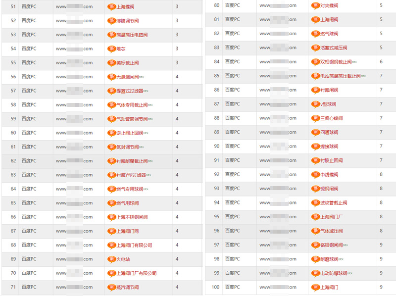 下圖是XX閥門企業(yè)整站優(yōu)化的部分效果圖,整站優(yōu)化有超過100個詞已上百度首頁。